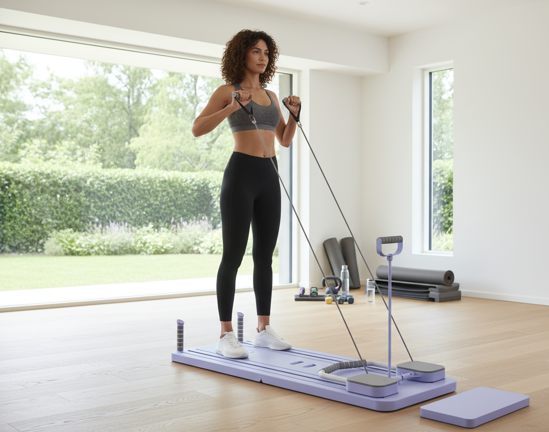 Un Reformer est l’appareil emblématique du Pilates. Grâce à son chariot coulissant et ses ressorts réglables, il permet de tonifier les muscles profonds, d’améliorer la posture et de renforcer le corps en douceur, tout en apportant fluidité et élégance au mouvement.